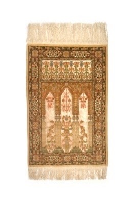 LOTE : 00054 ALFOMBRA HEREKE Alfombra Turca Turkish carpet 104×69 cm. Realizada en Seda y Oro.Made of silk and Gold